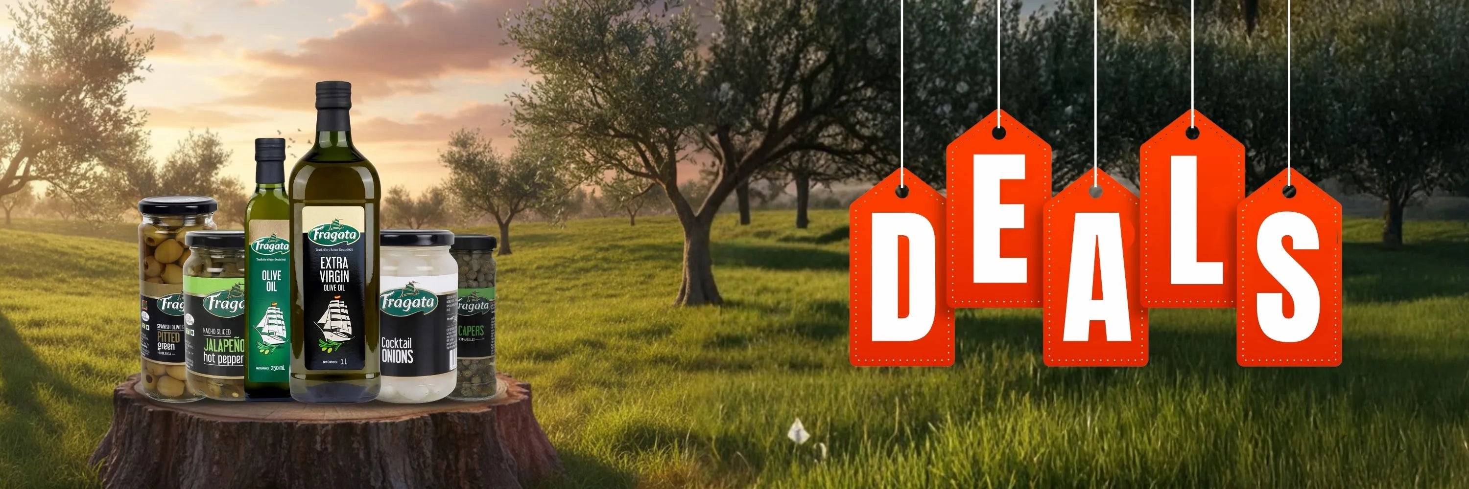Fragata Combo Deals | Home Style Pitted Green Queen Olives (670g), Pitted Green Olives (440g) & Sliced Green Olives (450g)